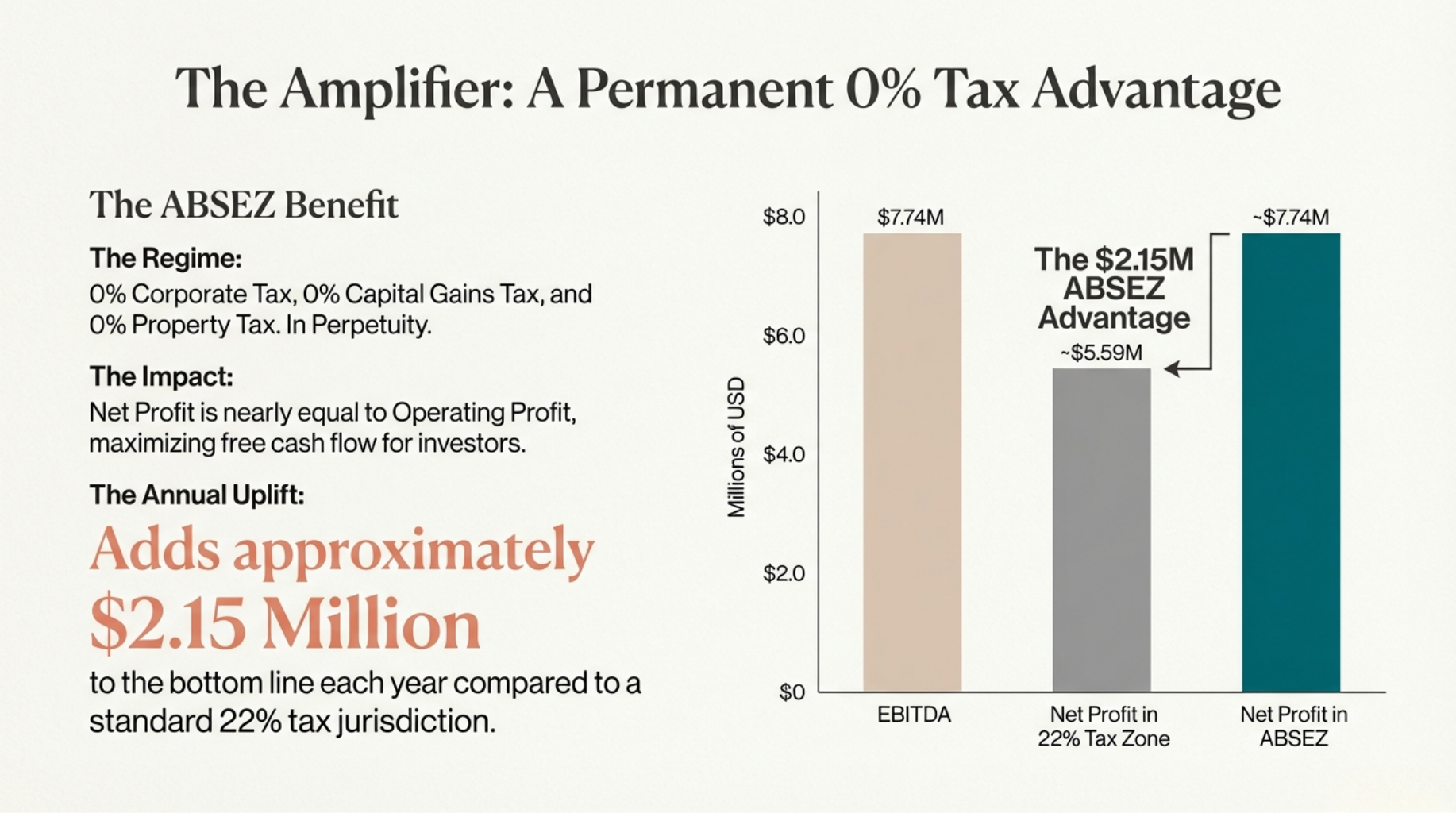 Benefit from a completely tax-free zone, designed to maximize your returns and streamline your investment process.